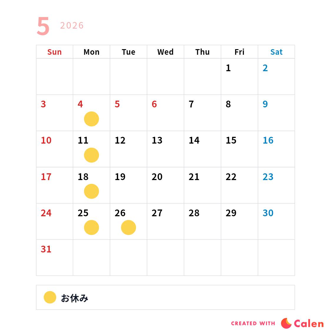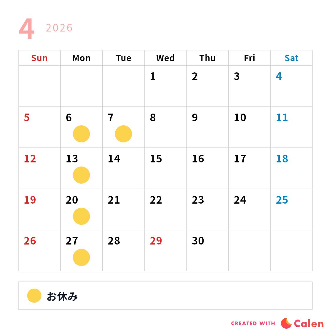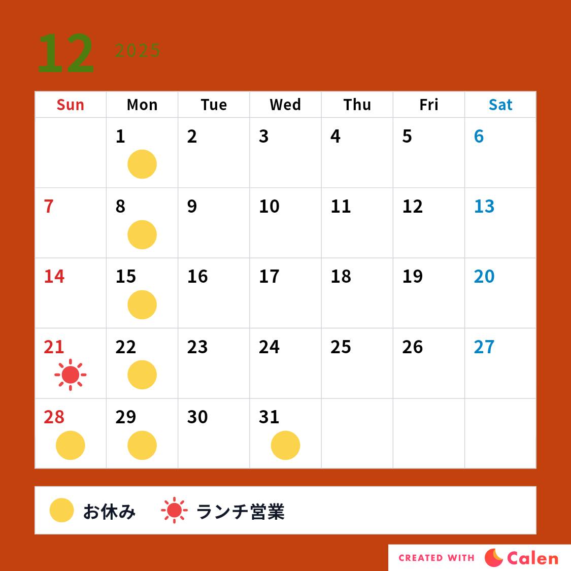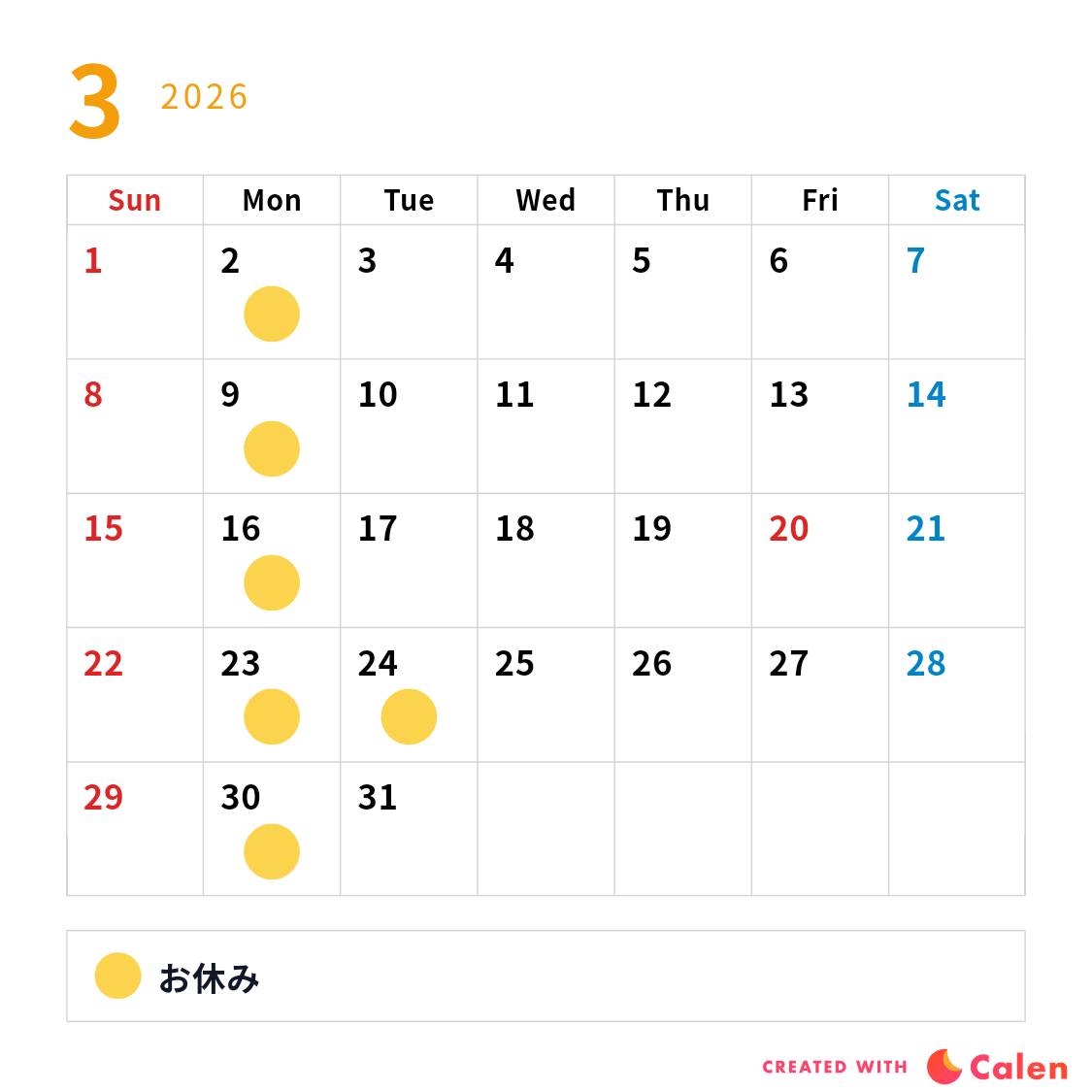 【定休日 月曜日】祝日月曜営業➡振替翌日火曜休(イレギュラーあり)